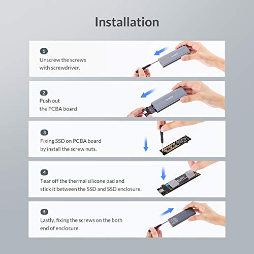 ORICO Alloggiamento SSD M.2 SATA in alluminio esterno USB 3.1 (5 Gbps) a M2 NGFF adattatore per SSD B-Key o B+M Key - (non compatibile con NVMe o PCIe)