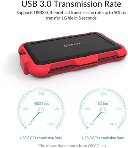 ORICO Alloggiamento per disco rigido SSD HDD da 2,5 pollici USB 3.0 a SATA Rugged Hard Disk Caddy, supporto UASP, cavo USB integrato