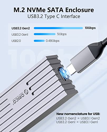 ORICO Alluminio Case SSD M.2 NVME SATA 10Gbps USB C 3.2 Gen 2, 6 Gbps M.2 SATA, M2 Adattatore per PCIe NVME SATA M-Key (B+M Key) 2242/2260/2280, Lettore M.2 Enclosure Supporto UASP Trim SMART- FV35GY
