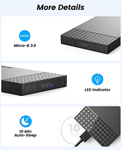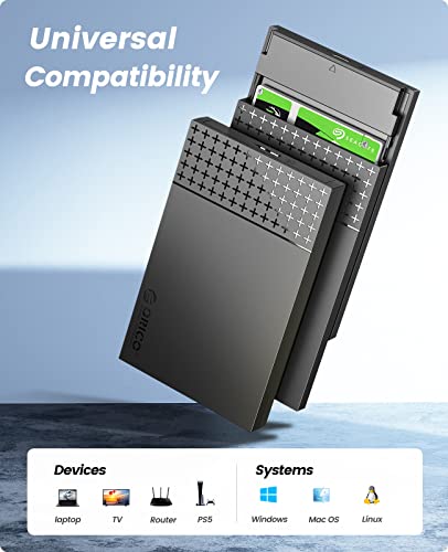 Custodia esterna per SSD: la custodia per disco rigido da 2,5 pollici di ORICO può facilmente collegare il disco rigido SSD da 2,5 pollici da 7-9,5 mm a PC, laptop, smart TV, router intelligenti, PS4 e XBOX per trasferire dati, espandere l'archiviazione, aggiornare i sistemi, eseguire il backup dei file e riciclare i vecchi dischi rigidi o SSD da 2,5 pollici.