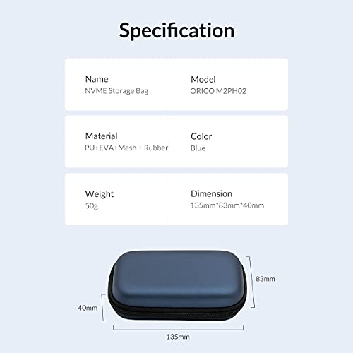 ORICO Custodia per Hard Drive M.2 SSD Case Esterno, Custodia Protettiva Portatile in EVA + PU per Case Esterno M.2 SSD/SSD/Portatile SSD/Cuffie/Cavo Dati USB, 135mm x 83mm x 40mm (Blu)-M2PH02