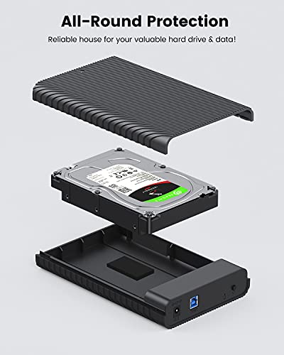 Alloggiamento per disco rigido portatile da 3,5 pollici con materiale ABS di alta qualità e plug and play con installazione senza attrezzi, nessun driver necessario. Basta far scorrere la copertura, collegare l'unità, collegare la copertura e il gioco è fatto. Alloggiamento per disco rigido che garantisce un'alimentazione di energia stabile e affidabile per un trasferimento dati massiccio.