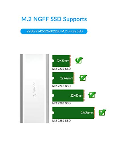 ORICO M.2 NGFF SSD Enclosure per Disco Rigido Custodia da USB C 3.1 Tipo C Gen 1, 5Gbps, Fino a 2 TB, Adattatore NGFF B-Key 2230 2242 2260 2280