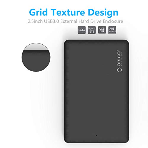 ORICO Case Esterno per Disco Rigido 2.5'', USB 3.0 a SATA 3.0 Case Hard Disk per HDD da 7 mm / 9.5 mm HDD e SSD Fino a 2 TB-Nero