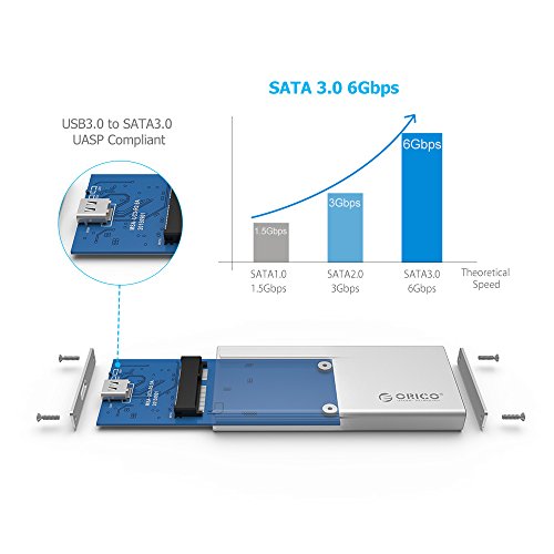 ORICO Case Esterno mSATA in Alluminio USB 3.0 per M50 mSATA SSD con UASP- Argento