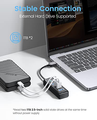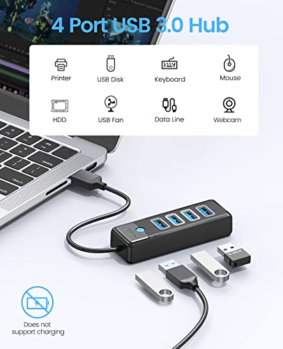 ORICO 4 porte USB HUB 3.0, USB Splitter per laptop con cavo da 0.15m, Multi USB Adattatore, trasferimento dati veloce compatibile con Mac OS 10.X e versioni successive, Linux, Android-Nero