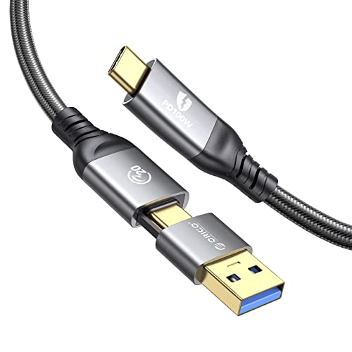 ORICO Cavo USB, Cavo di Ricarica Multi 2 in 1, Cavo di Ricarica Rapida da 100 W PD, Cavo Dati Telefono Cellulare Tipo C 20 Gbps, Display 4K@60Hz, Compatibile con MacBook, iPad Pro, Hub, 0,5M
