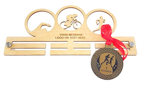 Origin Personalised Triathlon Wood Wooden Medal Holder, Hanger, Display