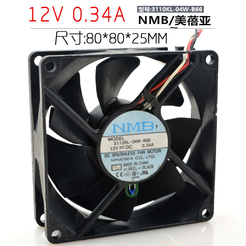 Original NMB 3110KL-04W-B66 12V 0.34A 8cm 8025 power supply chassis mute cooling fan