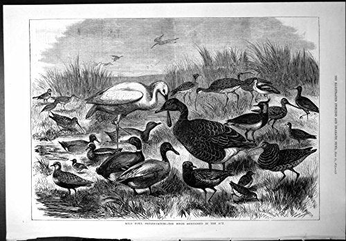 Original old antique victorian print Stampa Antica degli Uccelli Selvaggi di Conservazione dei Gallinacei Citati Nei Trampolieri 1877 delle Anatre di Ruff di Legge
