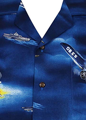 P.L.A. | Original Camicia Hawaiana | Signori | S - 4XL | Maniche Corte | Tasca Frontale | Hawaii Stampa | Aereo | Blu