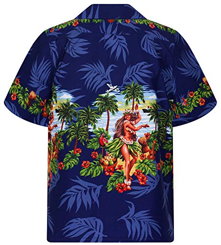 KY‘s | Original Camicia Hawaiana | Signori | S - 6XL | Maniche Corte | Tasca Frontale | Hawaii Stampa | Hula Ragazza | Blu