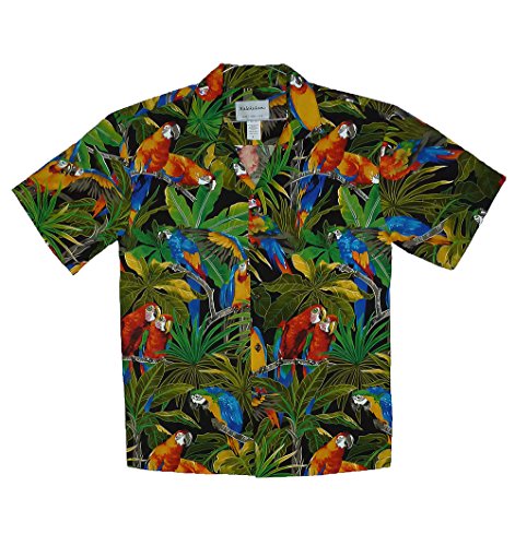 KY‘s | Original Camicia Hawaiana | Signori | S - 6XL | Maniche Corte | Tasca Frontale | Hawaii Stampa | Pappagallo Giungla| Nero