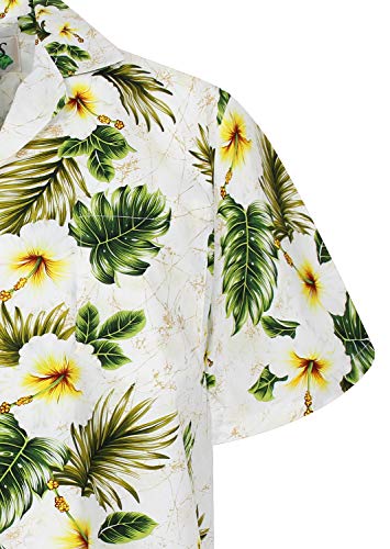 KY‘s | Original Camicia Hawaiana | Signori | S - 6XL | Maniche Corte | Tasca Frontale | Hawaii Stampa | Fiori | Bianco