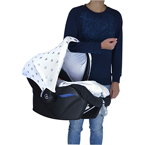 The Original Dooky 126367 Cappottina in Cotone Universale per Ovetto, Bianca con Stelle Argento