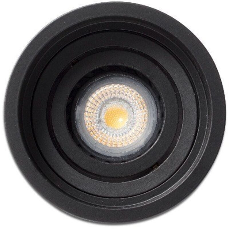 Empotrable de techo orientable redondo con marco de color negro sin marco, modelo ACRE. Este empotrable fabricado en acero se puede orientar una vez instalado. Necesita un portalámparas y una bombilla GU10 que no están incluidas, se debe adquirir por separado. Recomendamos el portalámparas ref. 43065 y la bombilla ref. 17321.