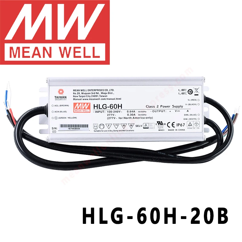 Original Mean Well HLG-60H-20B for Street/high-bay/greenhouse/parking meanwell 60W Constant Voltage Constant Current LED Driver