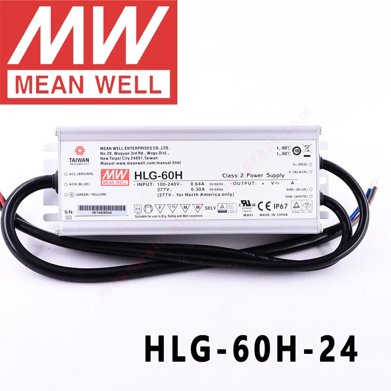 Original Mean Well HLG-60H-24 for Street/high-bay/greenhouse/parking meanwell 60W Constant Voltage Constant Current LED Driver