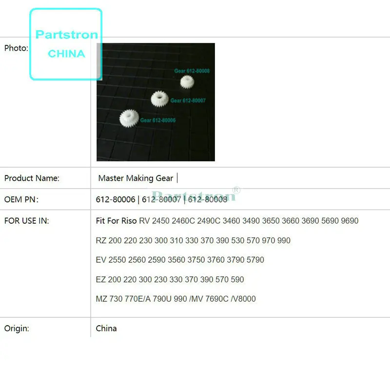 Original new Master Making Gear 612-80006 612-80007 612-80008 For use in Riso RV RZ EV EZ ES MV MZ RV 2450 2460C 2490C