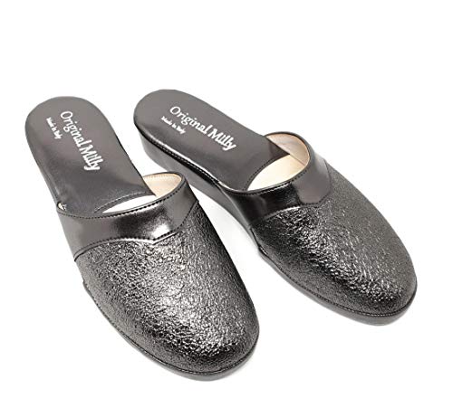 Original Milly 4200 Ciabatte da Camera Chiuse per Donna Pantofole per casa Classiche Eleganti Tacco 3 cm (38 EU, Piombo, 38)