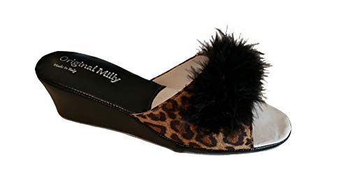 Original Milly, Ciabatte Morbide da Camera Aperte per Donna, Pantofole per casa Classiche Eleganti Tacco Alte 5 cm, Fantasia Animalier e Piuma Marabou (38)