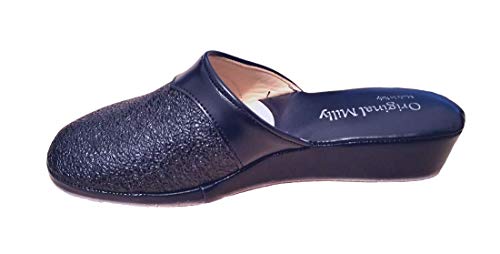 Original Milly, Ciabatte Morbide Invernali da Camera Chiuse per Donna, Pantofole per casa Classiche Eleganti Tacco Alte 3 cm, Lavabili, 4200, Argento, Oro, Piombo, Blu (36 EU, Blu, 36)