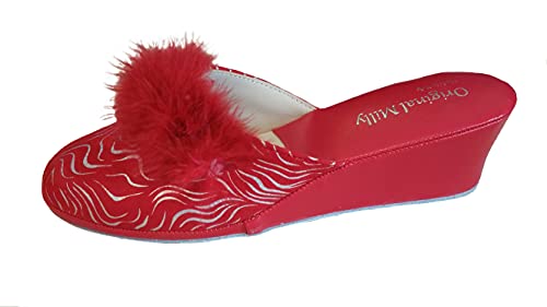 Original Milly 300 Striato Rosso con Piuma, Eleganti Pantofole Chiuse Davanti, Altezza 5 cm, con Piuma Marabou (Numeric_34)