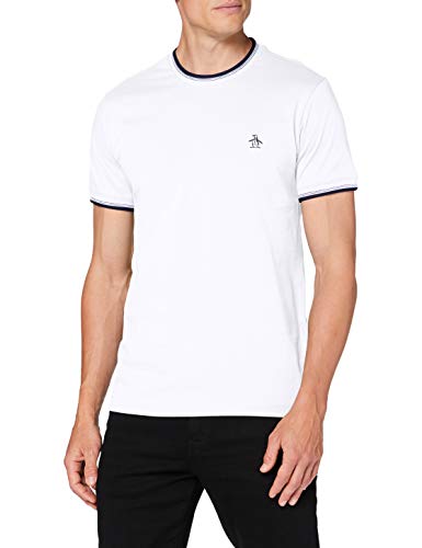 ORIGINAL PENGUIN Sticker Pete Ringer Tee T-Shirt, Bianco brillante-118, L Uomo