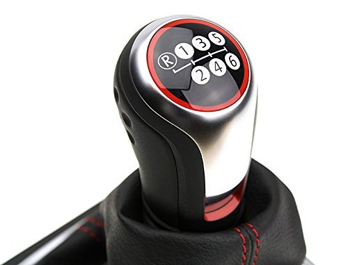 - Pomello per leva del cambio, originale, per Golf GTI / Jetta / Scirocco / Eos, in pelle, 6 marce, colore: nero / rosso, incluso manicotto in cuoio.