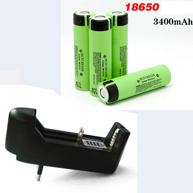Original Rechargeable Battery NCR 18650 3.7V 3400mAh + EU charger li-ion Rechargeable Batteries NCR18650B Battery