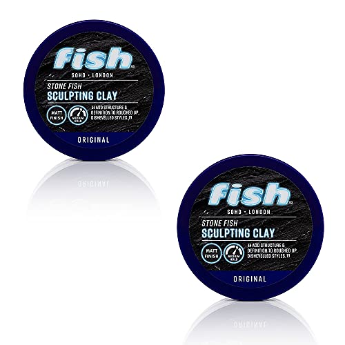 Fish Original Stone Fish Sculpting Clay, For Roughed Up and Dishevelled Styles, Medium Hold, Matt Finish, Fine Hair, Cruelty Free, 2 x 70ml