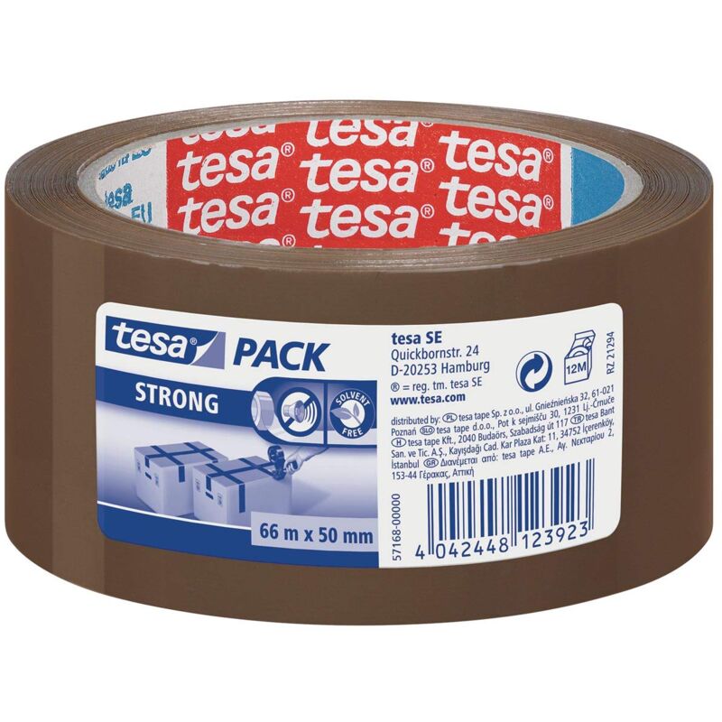 Tesapack strong è un pratico nastro di tenuta per imballaggi e cartoni che è stato realizzato per una vasta gamma di applicazioni domestiche tipiche. Offre esattamente la combinazione di qualità previste da un nastro di imballaggio multiuso per uso domestico. Due versioni per diverse esigenze Oltre a una versione marrone standard tesapack strong è disponibile anche con un supporto trasparente. Ciò significa, è possibile selezionare il tipo giusto di nastro di imballaggio per qualsiasi applicazione. Utilizzare il nastro marrone per sigillare rapidamente un cartone di spedizione o optare per il nastro trasparente per avvolgere bene un regalo. Forte e resistente ai raggi UV tesapack dispone di un robusto supporto in polipropilene che offre una maggiore sicurezza di tenuta con elevata resistenza ai raggi UV. Il rivestimento autoadesivo del nastro si basa su una formula che offre una forte adesione con elevata resistenza alle forze di taglio. Applicazione facile ed efficiente tesapack