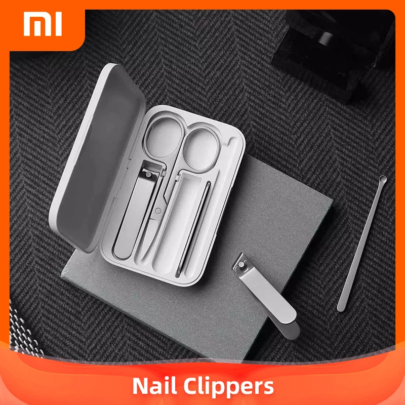 Original Xiaomi MIJIA Nail Clippers Set 5Pcs Stainless Manicure Pedicure Nail Clipper Cutter Nail File Ear Pick with Storage Box