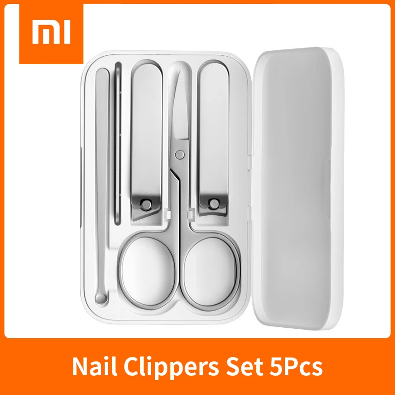 Original XIAOMI MIJIA Nail Clippers Set 5Pcs Stainless Manicure Pedicure Nail Clipper Cutter Nail File Ear Pick with Storage Box