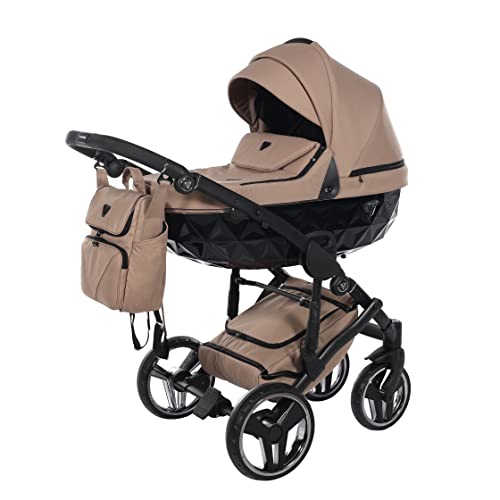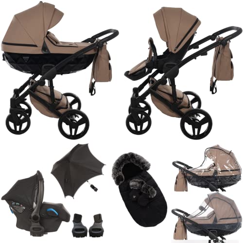Originale Junama Diamond Basic 3in1 + Sacchi Nanna + Guanti + Ombrello Sistemi Modulari Passeggino Combinato Exclusive Prams (04 marrone)
