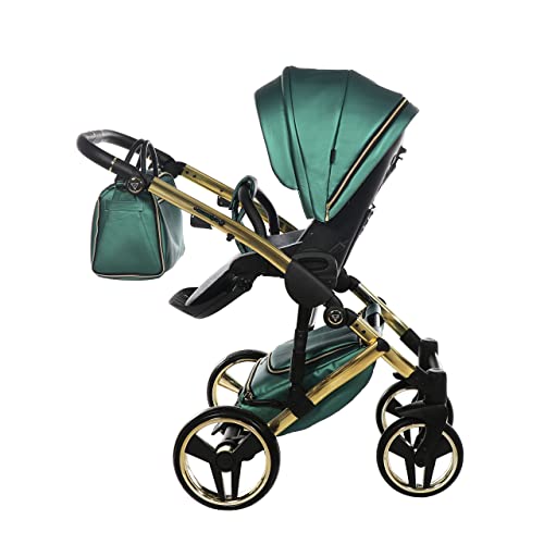 Originale Junama Diamond Fluo-Line 2in1 3in1 4in1 Ombrello Sistemi Modulari Passeggino Combinato + accessori originali Exclusive Prams (2in1, Oro-Verde 02)