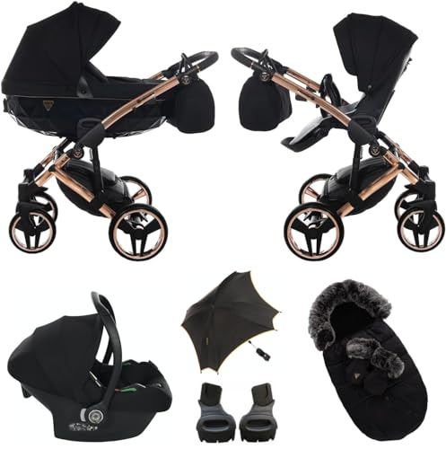 Originale Junama Diamond Individual 2in1 3in1 4in1 + Sacchi Nanna + Guanti + Ombrello Sistemi Modulari Passeggino Combinato + accessori originali Exclusive Prams (3in1, Rame-Nero 03)