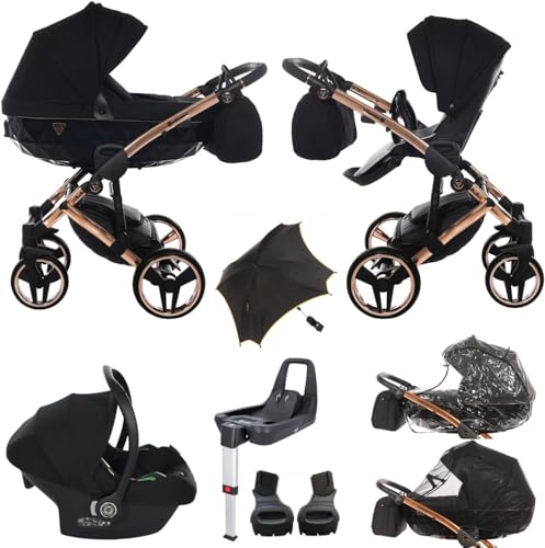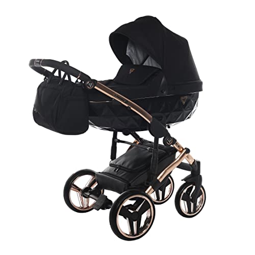 Originale Junama Diamond Individual v2 Sistemi Modulari Passeggino Combinato 4in1 Exclusive Prams (03 nero - rame)