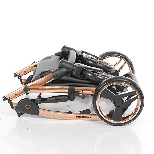Originale Junama Diamond Mirror Satin 2in1 3in1 4in1 Ombrello Sistemi Modulari Passeggino Combinato + accessori originali Exclusive Prams (4in1 con ISOFIX base, Rame-Bianco 05)