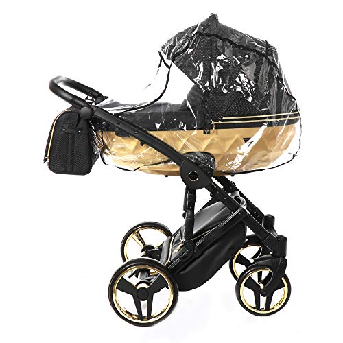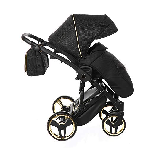 Originale Junama Diamond Mirror Satin 2in1 3in1 4in1 Ombrello Sistemi Modulari Passeggino Combinato + accessori originali Exclusive Prams (3in1, Nero-Oro 03)