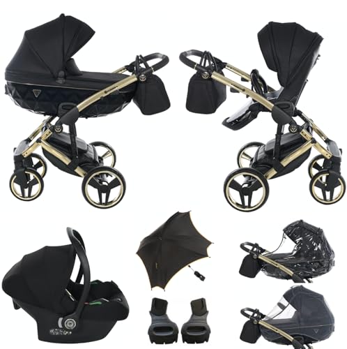 Originale Junama Diamond S - Sistemi Modulari Passeggino Combinato 2in1 3in1 4in1 + accessori originali Exclusive Prams (3in1, Nero-Oro (02))