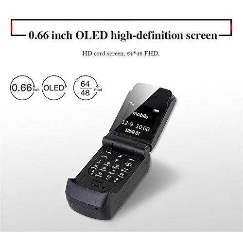 Originale LONG-CZ J9 Mini Flip Mobile Phone 0.66 "Il più piccolo telefono cellulare Wireless Bluetooth Dialer FM voce magica Vivavoce Chiamata (Nero)