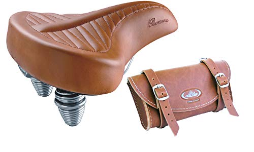 Sella dotata di due molle resistenti per assorbire gli urti. Ideale per biciclette vintage, bici da viaggio, city bike. Unisex Superficie resistente all'usura, liscia e antigraffio. Ideale per chi desidera una sella confortevole. Interno antiurto in schiuma/gel ad alta densità. Dimensioni: 26x23 cm. Peso: 996 gr.
