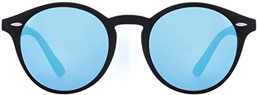 Originale La Optica UV400 Occhiali da Sole Unisex Specchiata Rotondi - Confezione Singola Gommata Nero (Lenti: Azzuro specchiato)