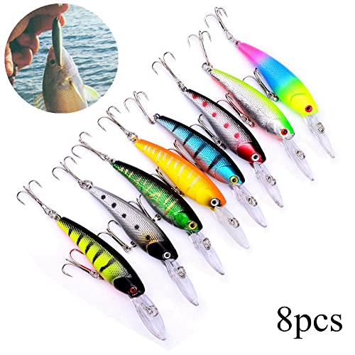 OriGlam 8 Pack Esche da Pesca Minnow Swimbait Bass Trout Bait, Esche da Pesca Artificiali Minnow Esche Bass realistiche, Crankbait Esca da Pesca per Trota, Spigola, Salmone