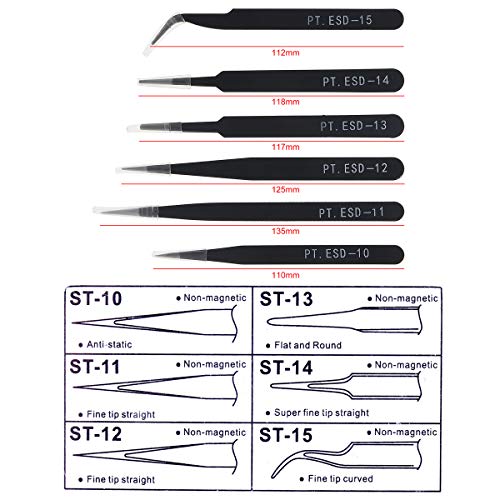 - Antistatiche - Il kit mira a soddisfare i requisiti dell'elettronica. Ogni pinzetta è placcata in materiali ESD resistenti che impediscono danni statici ai componenti elettronici. Il rivestimento ESD resistente aiuta a proteggere i componenti elettronici dall'elettricità statica.