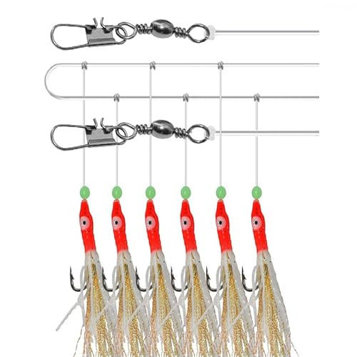 OriGlam 6 Hook esca Sling Skin, Night Light Salt Water Esca Sling, Feather Skin String Hook Light Fishing Ball