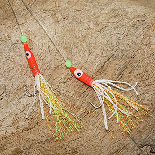 √ Design realistico: gli ami piumati con pelle di pesce, perle da notte, seta colorata brillano nell'acqua per attirare tutta l'attenzione degli altri pesci e aiutare i pescatori ad attirare più pesci.