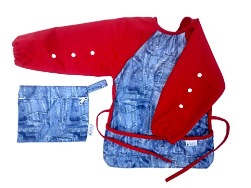 Origu Bavaglino integrale con bottone a scatto, con maniche lunghe regolabili, grembiule, impermeabile, unisex, per bambini e neonati, con custodia impermeabile da viaggio,resistente all'acqua, lavabile in lavatrice, con custodia e laccetto extra, ideale per svezzamento, pasti e pasticci con il cibo...