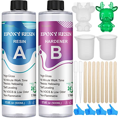 Orimath Resina Epossidica Trasparente Kit 1000ml, Rapporto 1:1 Starter Kit per Principianti Comprendente Resina e Indurente, Stampi per Resina, Kit Resina per Creazioni, Gioielli, Legno